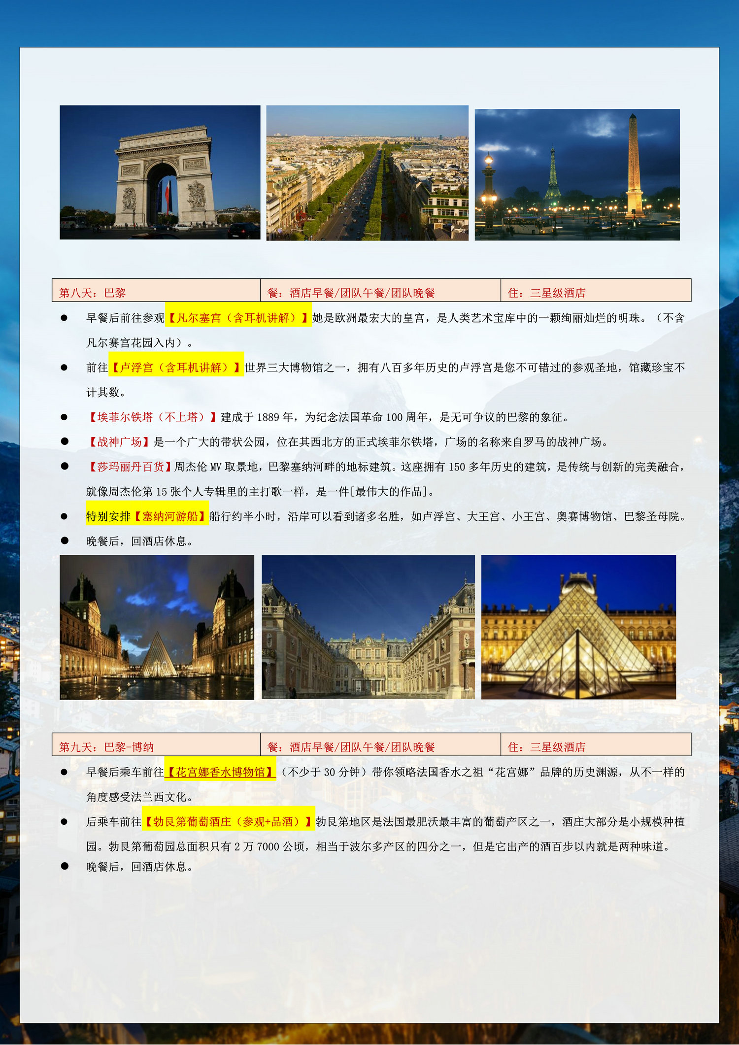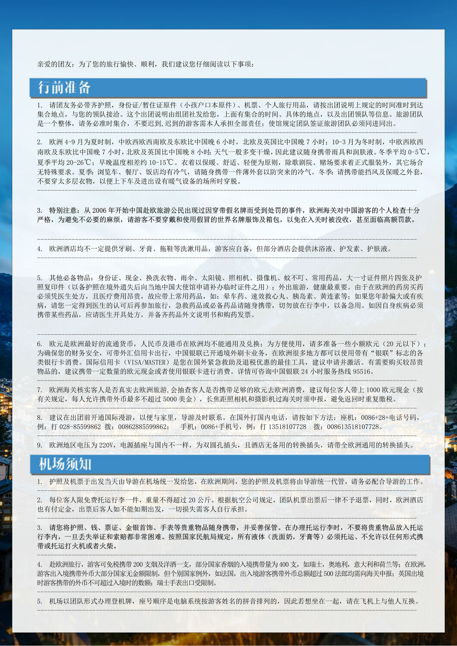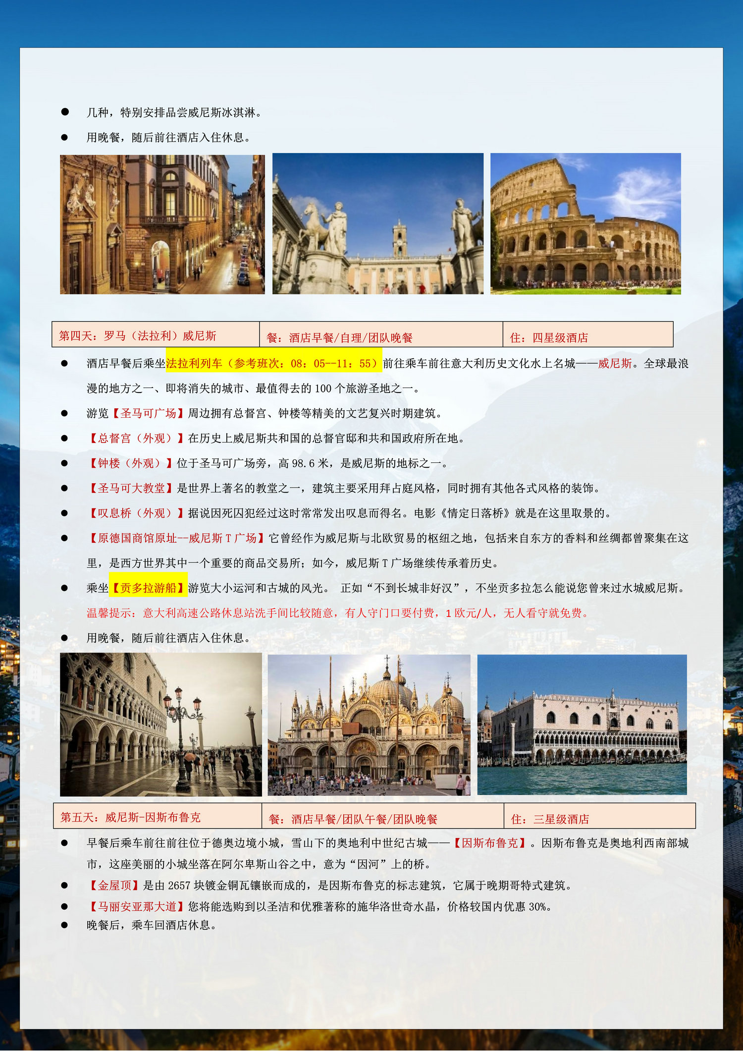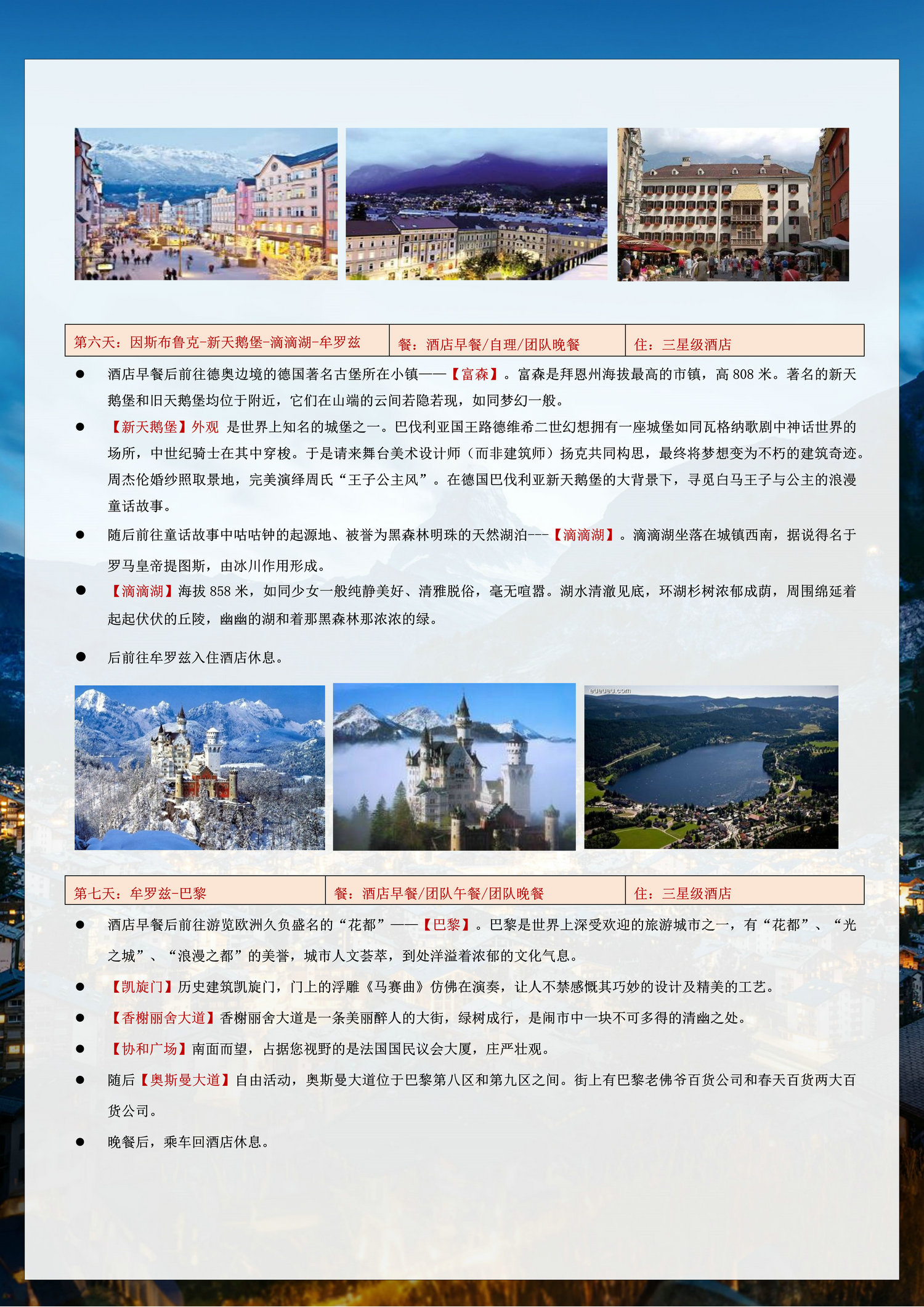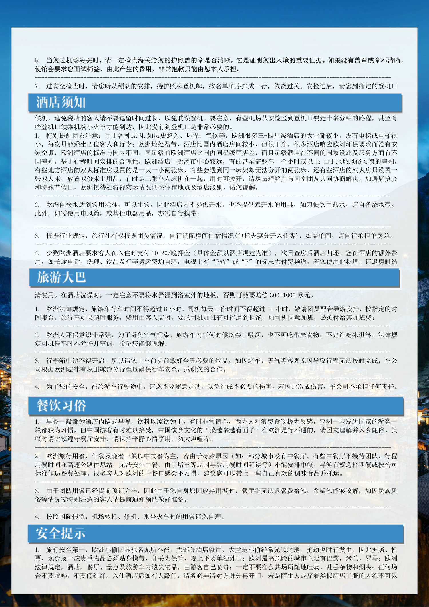 3、为遵守欧洲消防法规,满6岁孩童必须占床,6岁以下可不占床;欧式建筑房间大小不一,倘若部分标间获酒店善意升级,非本司所能掌控,亦无区别待遇,敬请您谅解;
