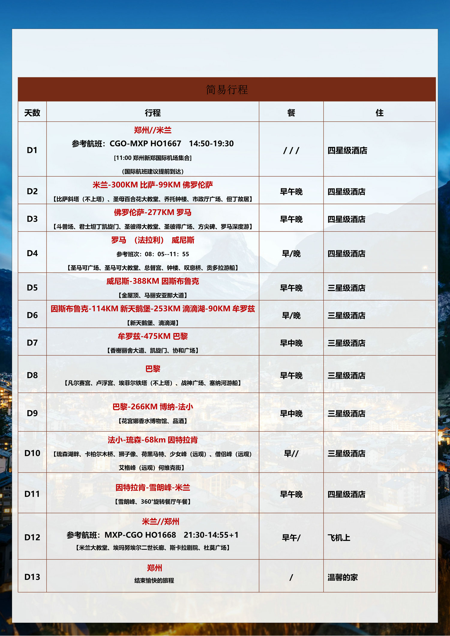 郑州去欧洲13日游请选好参团日期, 确定好人数,并来电询问最早团期,旺季期间价格可能会稍有变动,具体价格以来电咨询为准!