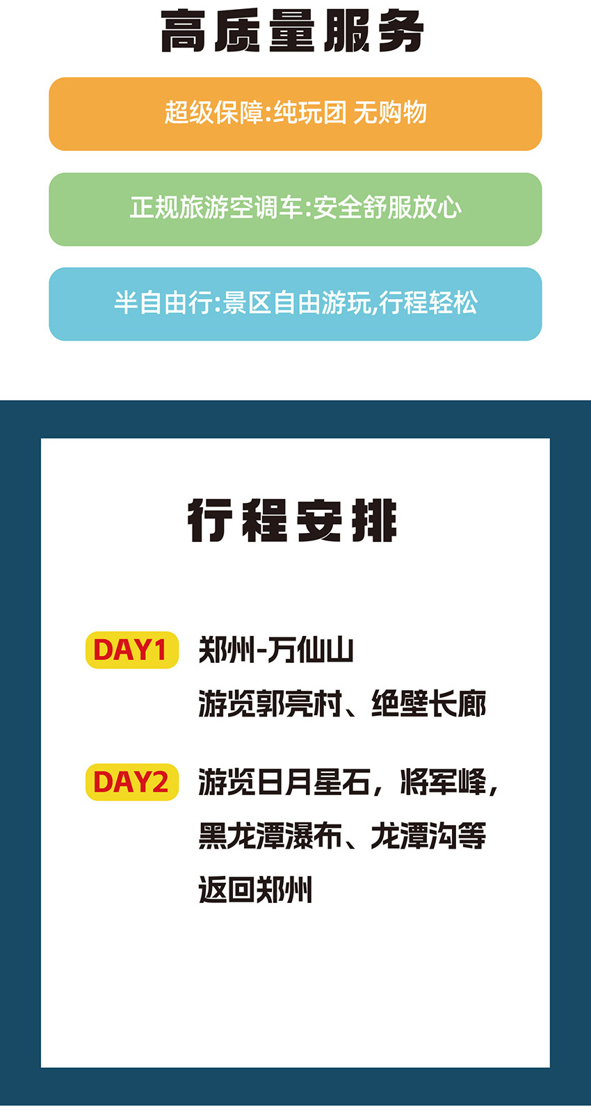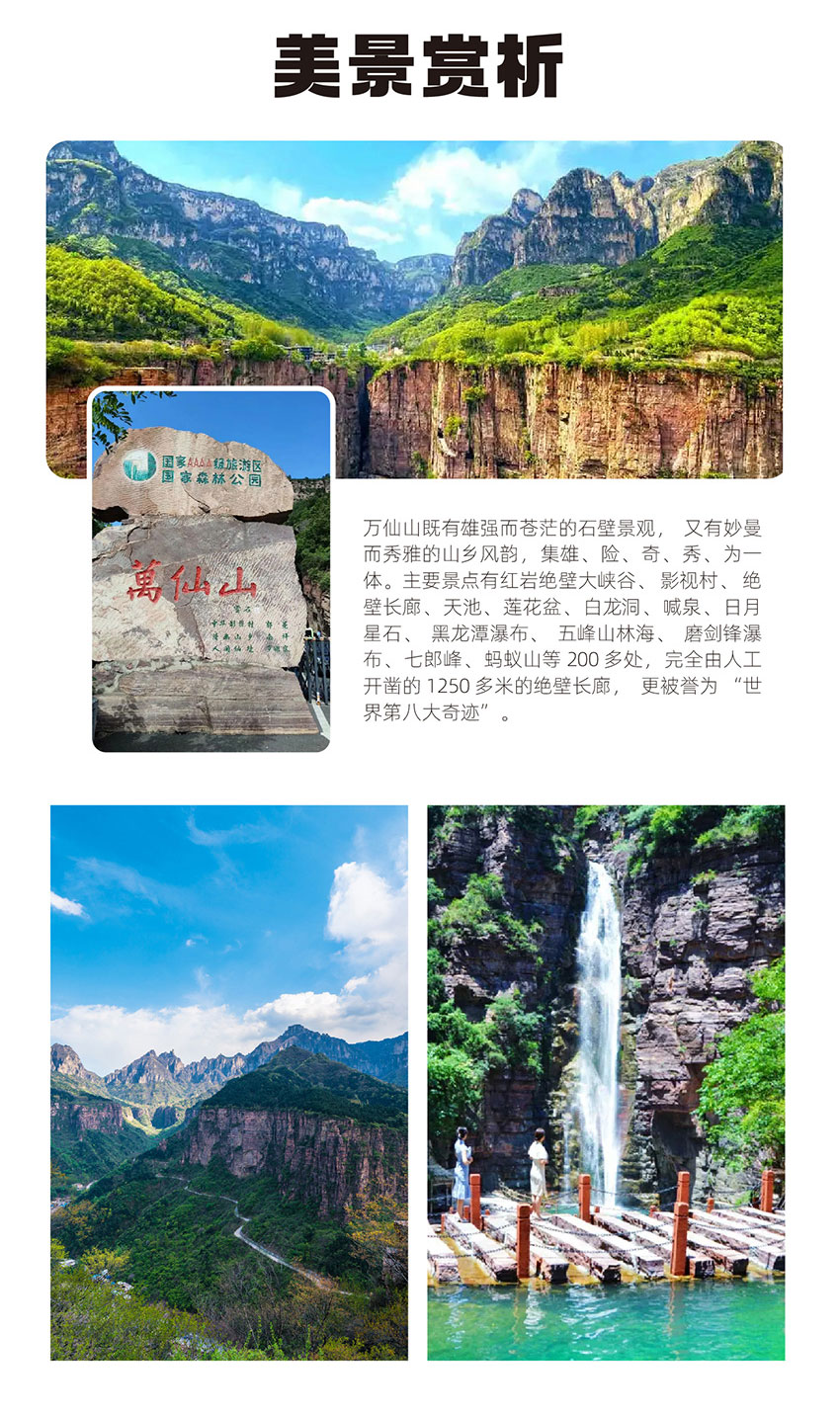【景点门票】:万仙山、万仙山景区-挂壁公路、郭亮村、日月星石、黑龙潭瀑布