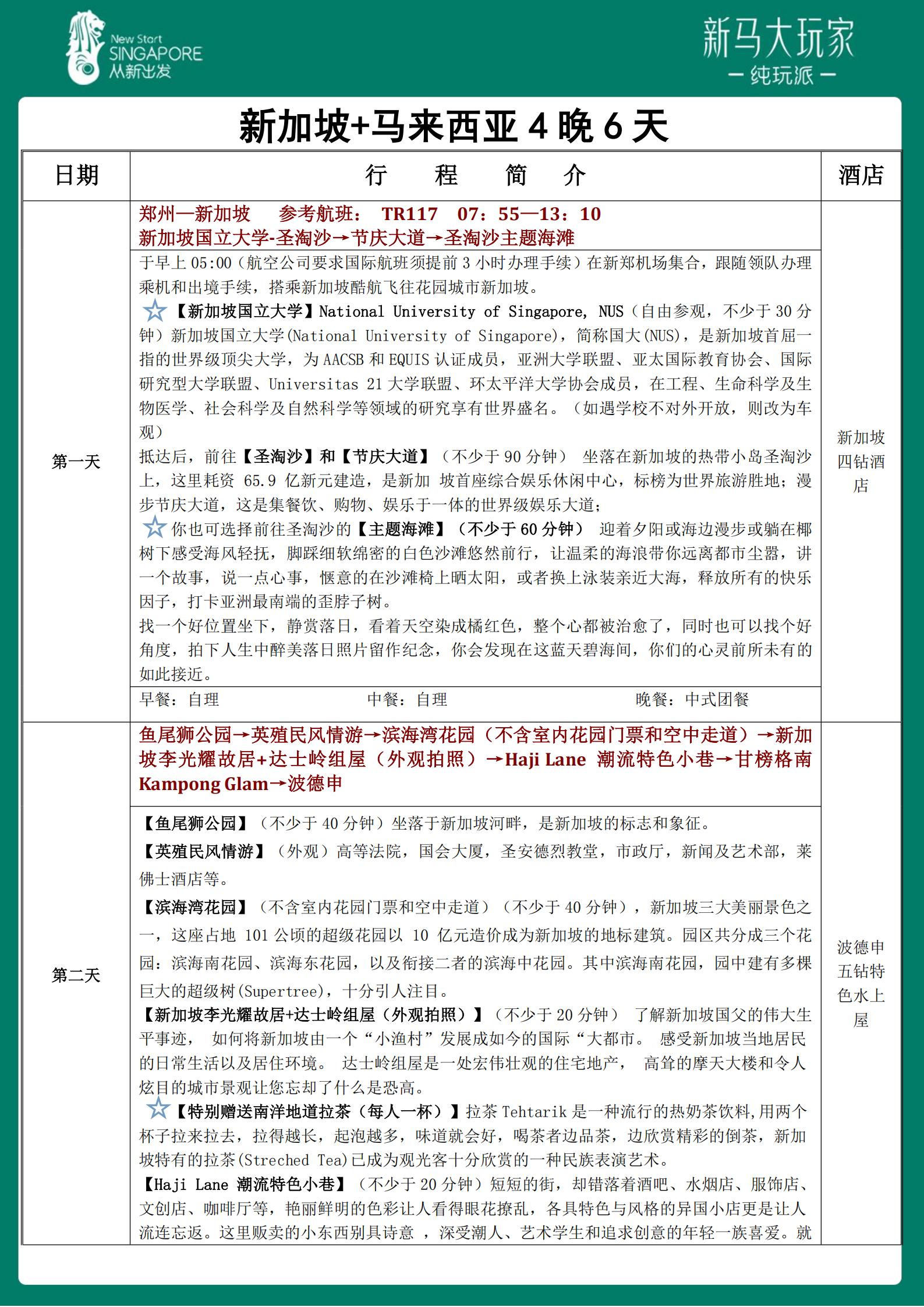 郑州到新加坡马来西亚 国庆新马大玩家双飞6日游